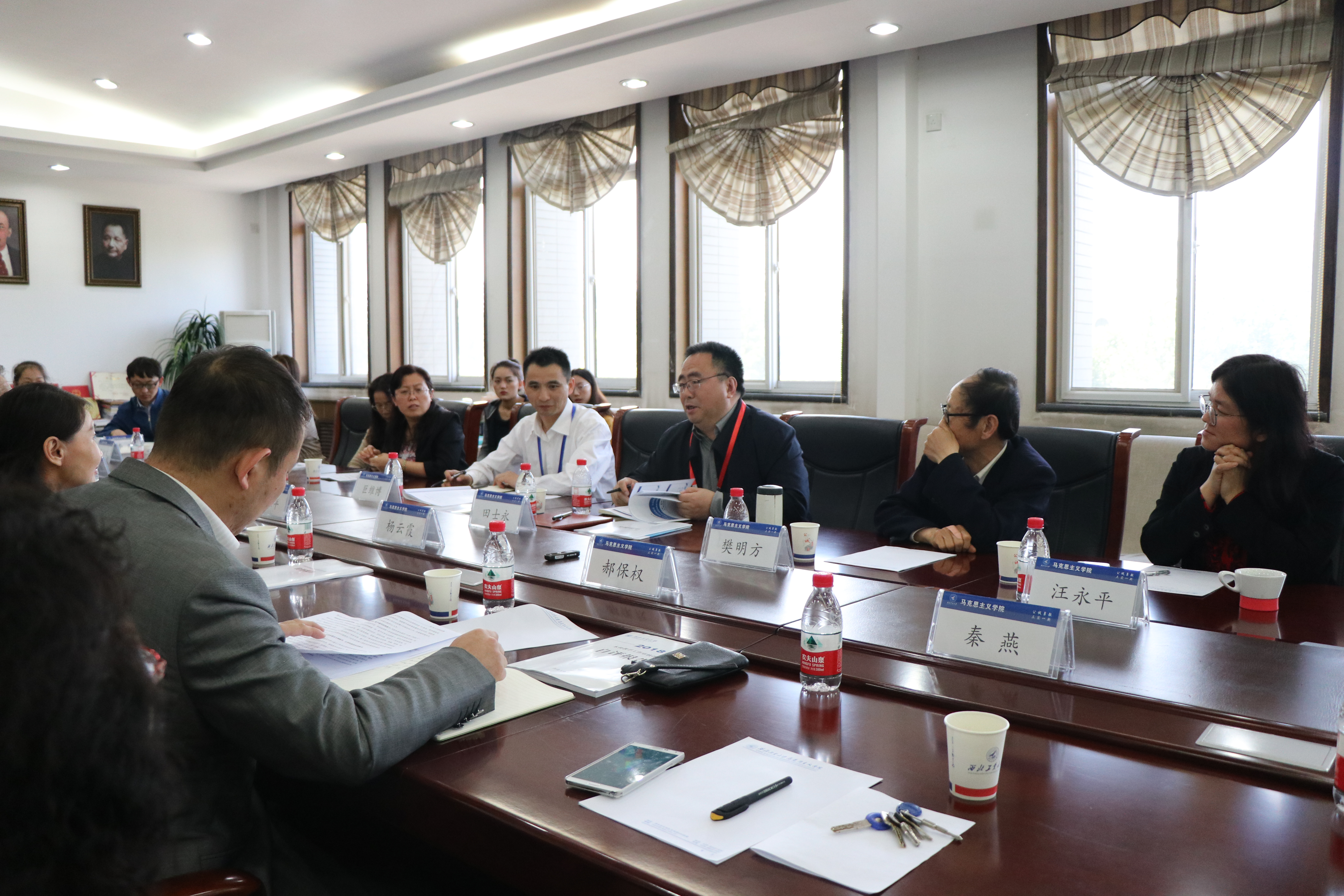 党委书记鲁卫平、院长杨云霞,党委副书记袁源、副院长郝保权及部分教授、博导和各系负责教师参加了此次专家走访座谈会。