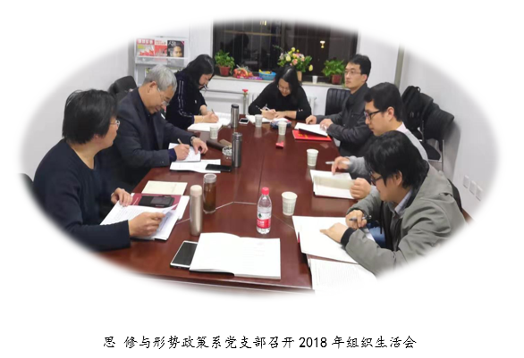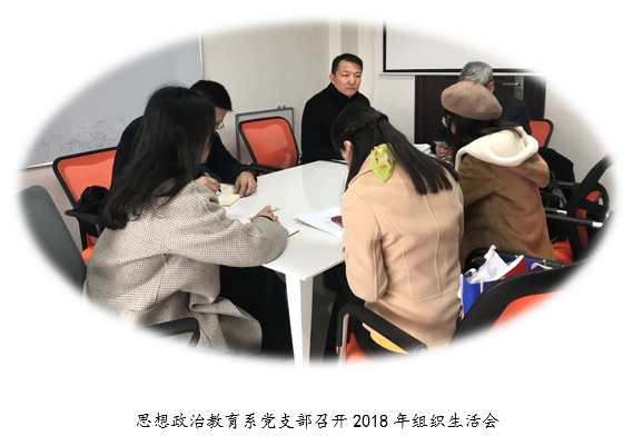 6个教工支部、3个学生党支部认真召开组织生活会、开展民主评议党员工作。召开组织生活会之前,各支部结合自身实际开展了集中学习和交流研讨。机关党支部重点学习了习近平总书记关于求真务实的重要论述;思修系党支部学习开《中国共产党支部工作条例(试行)》、《中国共产党纪律处分条例》;近现代史系党支部学习了习近平总书记关于党的政治建设重要论述;思政系党支部书记郝保权经过了充分的研究准备工作,以讲党课的形式从党史的角度切入,结合党章发展历程中生动活泼的小故事,讲述了党章的发展历程,上党课,讲党章;马原系党支部探讨了把组织生活会的学习扩大到学术科研的交流学习,提出希望以后多开展类似组织生活会。