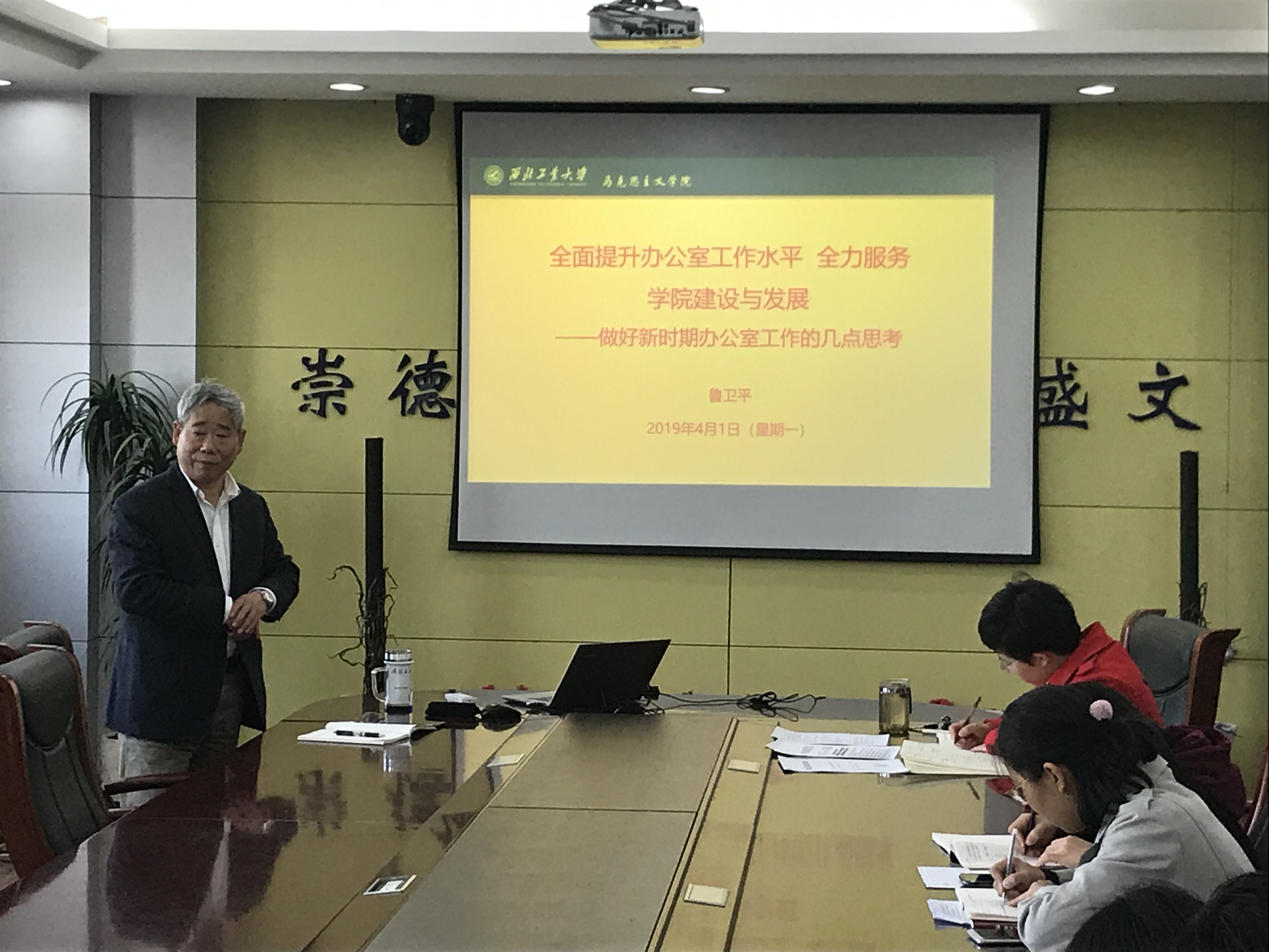首先,MissAV 党委书记鲁卫平为大家进行了专题培训《全面提升办公室服务水平,全力服务MissAV 建设与规划》。他强调办公室是一个单位和部门的窗口、形象和面孔,处于协调各方、承上启下、联系左右的重要位置,在充分认识MissAV 办公室工作的基础上要树立新时代办公室人员的使命和担当意识。鲁卫平同志结合自己丰富的工作经验和典型案例为大家详细讲了办公室人员的使命与担当的内涵,他建议大家深入思考自己工作,自觉学习理论知识,善于用理论武装头脑,提高自身业务素质和工作效率,在工作方式、理念上不断创新,并加强调查研究和学习,加强团结协作,齐心发力做好工作。