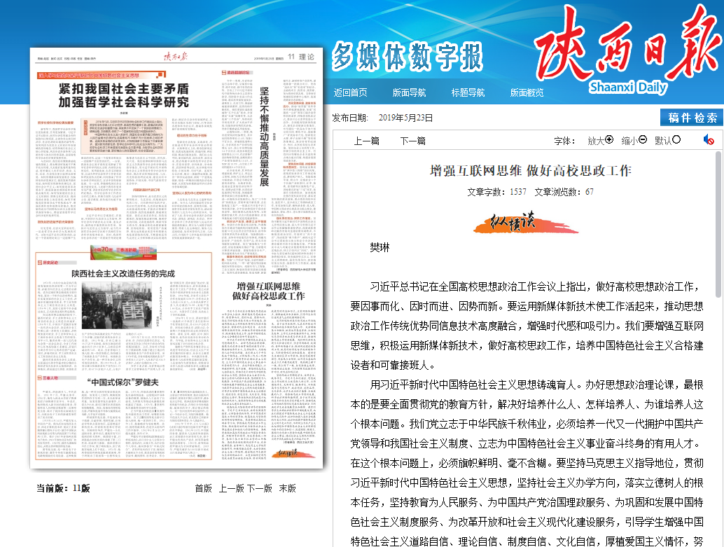 原文链接《陕西日报》://esb1.sxdaily.com.cn/sxrb/20190523/html/page_10_content_001.htm