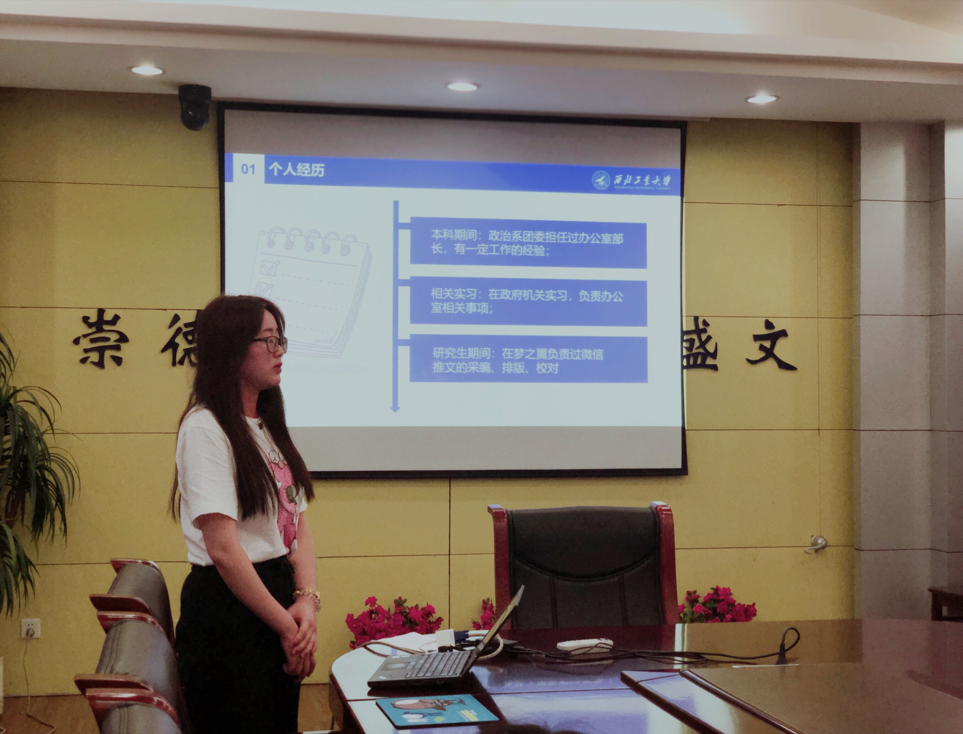 董咪咪总结了自己半年来的工作经历,在研究生会未来的发展规划中,她指出,要制定正确合理的工作规划,划清研会各个部门的职责,保证其有条不紊的运转;同时要组织一系列彰显马院特色的活动,在全校提高MissAV
