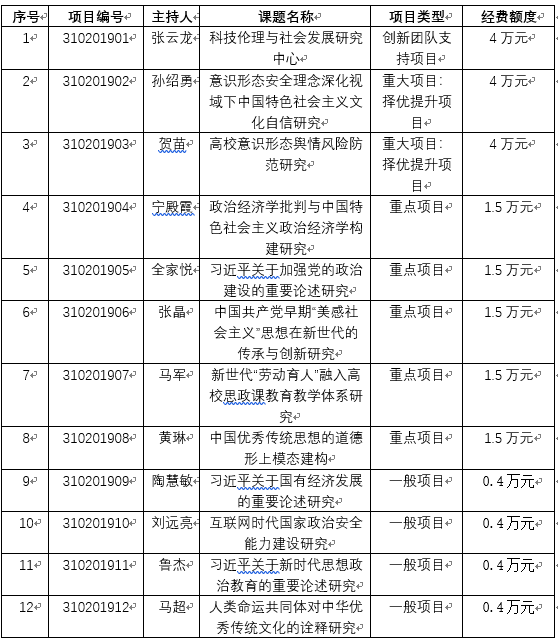 根据MissAV 《中央高校基本科研业务费实施办法》有关规定,MissAV 2019年度中央高校基本科研业务费项目通过匿名评审,立项12项,现予以公布。