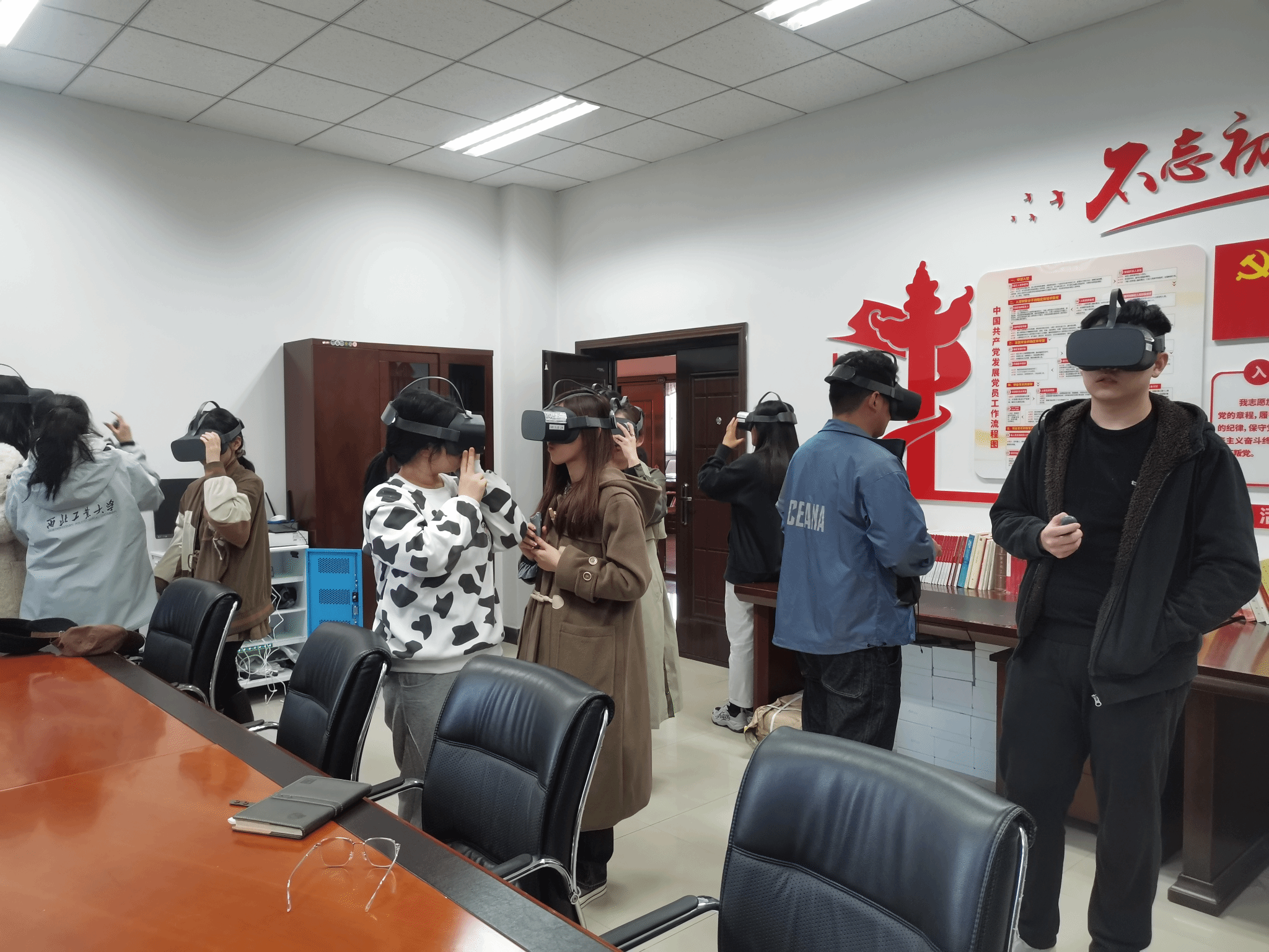 共同建设的党建VR活动室的相关设备进行沉浸式学党史体验,通过视觉、听觉等全方位立体化的运用,在沉浸式、互动式的红色文化学习体验中,让大家共同感受红色力量、传承红色精神。这种“身临其境”的党课方式增强了同志们主动学习理论知识的积极性和自觉性,达到了良好的学习效果。