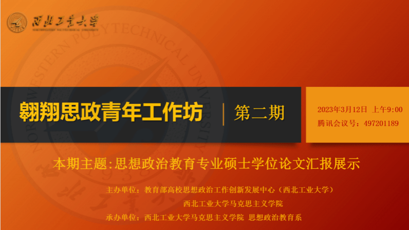思想政治教育系承办。本期工作坊共邀请了五位优秀青年思政学者作为“与谈人”,围绕七位思想政治教育专业硕士学位论文汇报,进行主题发言和观点对谈。
