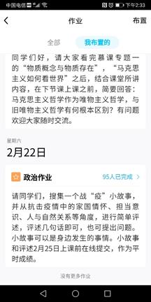为更好让抽象的哲学理论思想融入学生生活,帮助学生运用马克思主义理论分析解决生活、成长、学习中的具体问题,本课程在课堂授课基础上,还在周末举办三次以“感悟成长”为题的在线沙龙,涉及青春·奋斗·幸福、走进经典、用心生活三个主题,为学生成长、成才解惑答疑。