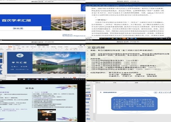 为了互相督促学习,克服学习拖延症,提高学习效率,促进师生间的学术交流,创新研究生培养方式,张云龙老师和王彦丽老师共同组织自己的6位研究生进行学习汇报交流,会议于2020年4月11日在腾讯会议上举行,鲁杰老师应邀参与交流探讨。