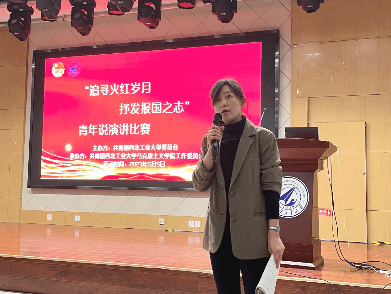 比赛结束后,王换老师结合自身经历和成长勉励青年学子应心系“国家事”、肩扛“国家责”,鼓励青年学子在报效祖国、服务人民中积极奋进,在坚定文化自信、讲好中国故事上争做表率,在砥砺奋进中放飞青春梦想,在奋进新征程中书写人生华章。