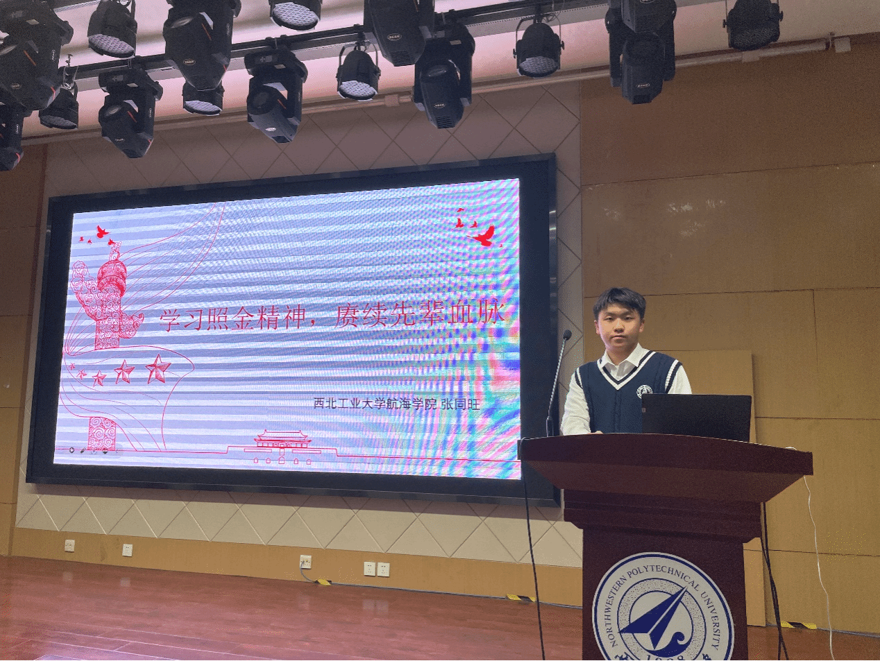 的张同旺以“照金精神”为切入点,通过讲述谢子长、刘志丹、习仲勋等老一辈革命家的事迹,呼吁广大青年学子将个人理想和国家发展相结合,艰苦奋斗,矢志报国。