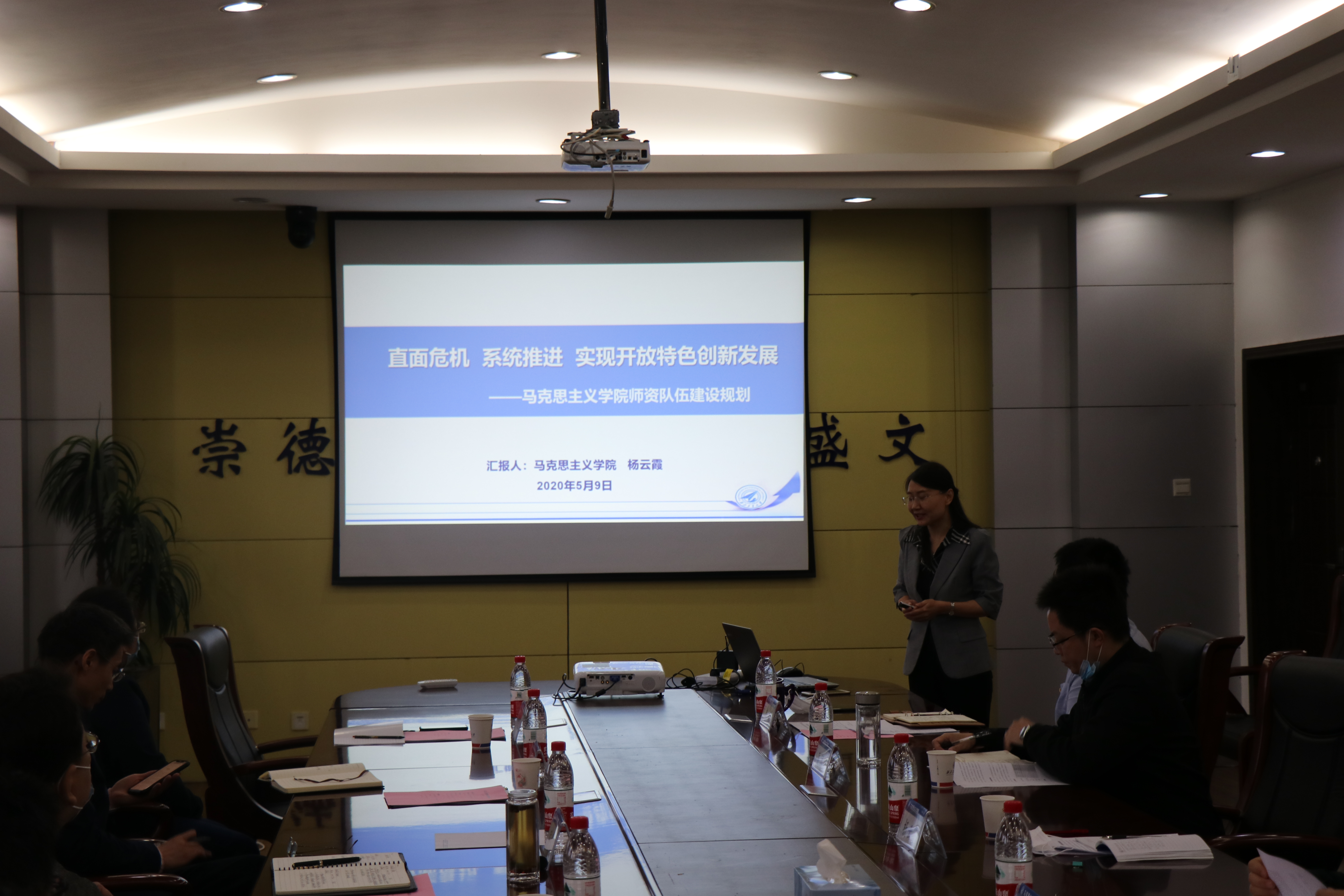 师资队伍规划,各类学术标准修订中的破“五唯”落实情况,“引育配用”拟采取的主要举措以及相关的条件保障等几个方面做了《直面危机 系统推进实现开放特色创新发展的师资队伍建设规划》的汇报。