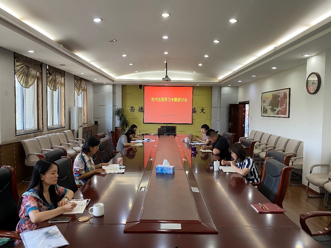 楼208会议室召开党规专题学习研讨会,会议由支部书记杜瑶主持,机关党员同志积极参会。