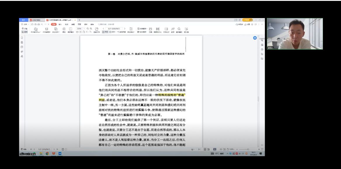 齐承水老师主持,东北大学姜耀东老师、温州大学张海波老师与硕博同学们一起阅读了《德意志意识形态》。