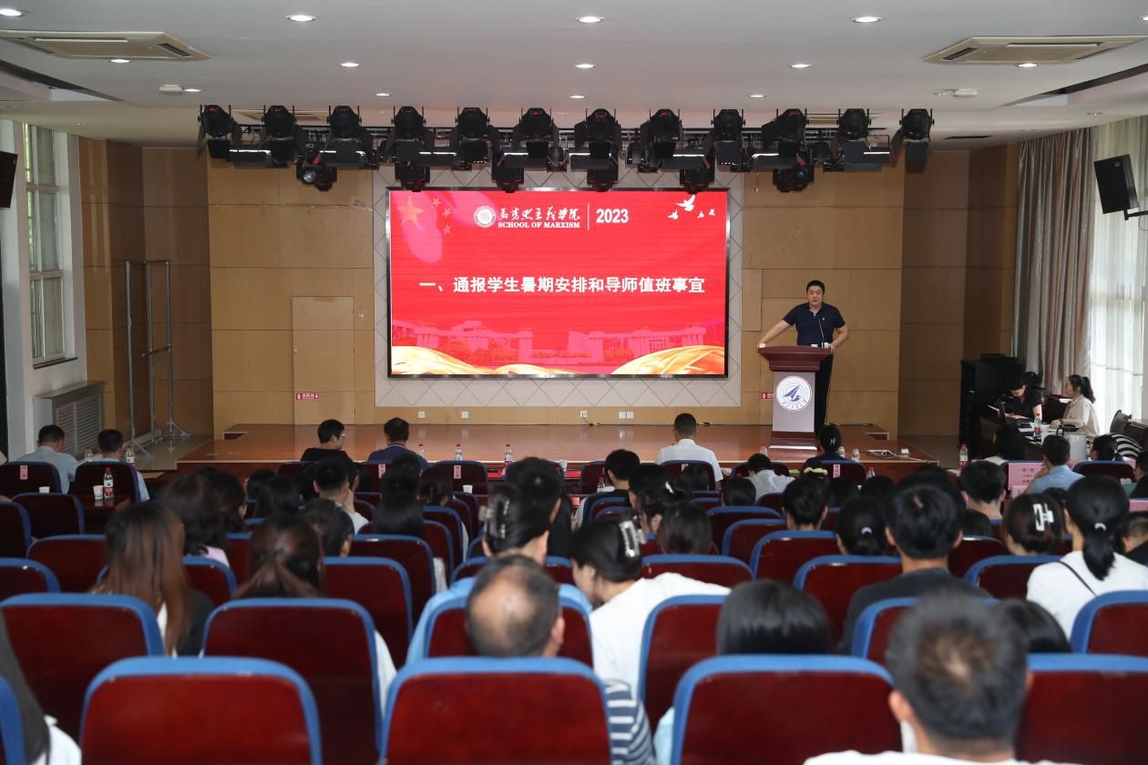 党委副书记李刚通报了学生暑期安排和导师值班事宜。学生放假时间为6月26日至9月3日,新生报到时间为8月30日,老生报到时间为9月3日。学生离开宿舍前需断掉电源和水阀,并注意交通安全。离校和返校需在MissAV