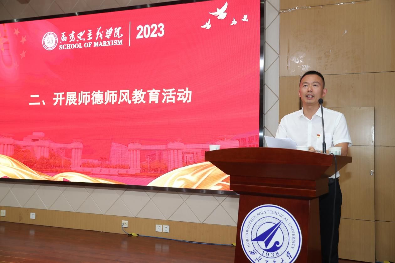 党委书记蒲传新将本单位师德集中学习教育工作的部署安排传达至全院教职工。他首先带领全体教职工认真学习习近平总书记关于教师队伍建设的重要指示批示精神和师德师风的重要论述;通报了《教育部关于在教育系统开展师德集中学习教育的通知》《教育部教师工作司关于报送专项整治“清朗净化”行动有关情况的通知》《教育部教师工作司关于在国家智慧教育公共服务平台开展“师德集中学习教育”专题教育的通知》。随后,蒲传新围绕《新时代高校教师职业行为十项准则》和“师德负面清单”开展宣讲、案例解读。以公开曝光的违反教师职业行为十项准则典型案例为反面教材,开展了师德警示教育和教师法治教育,引导全体教职工以案为鉴,做到警钟长鸣。