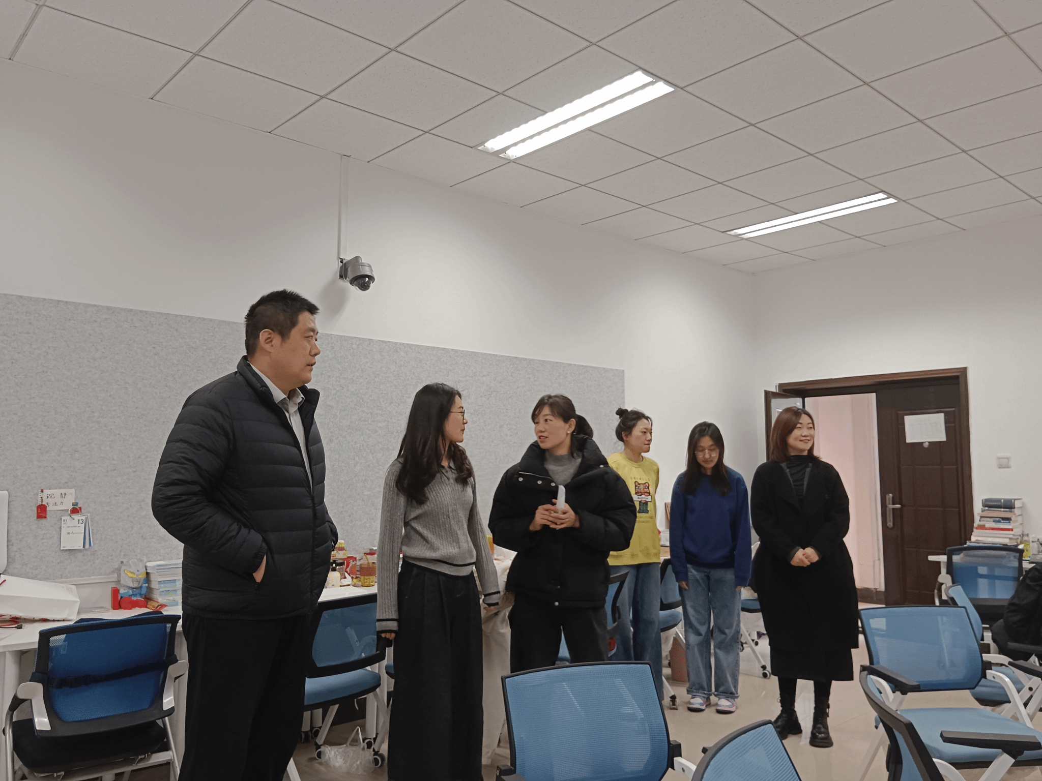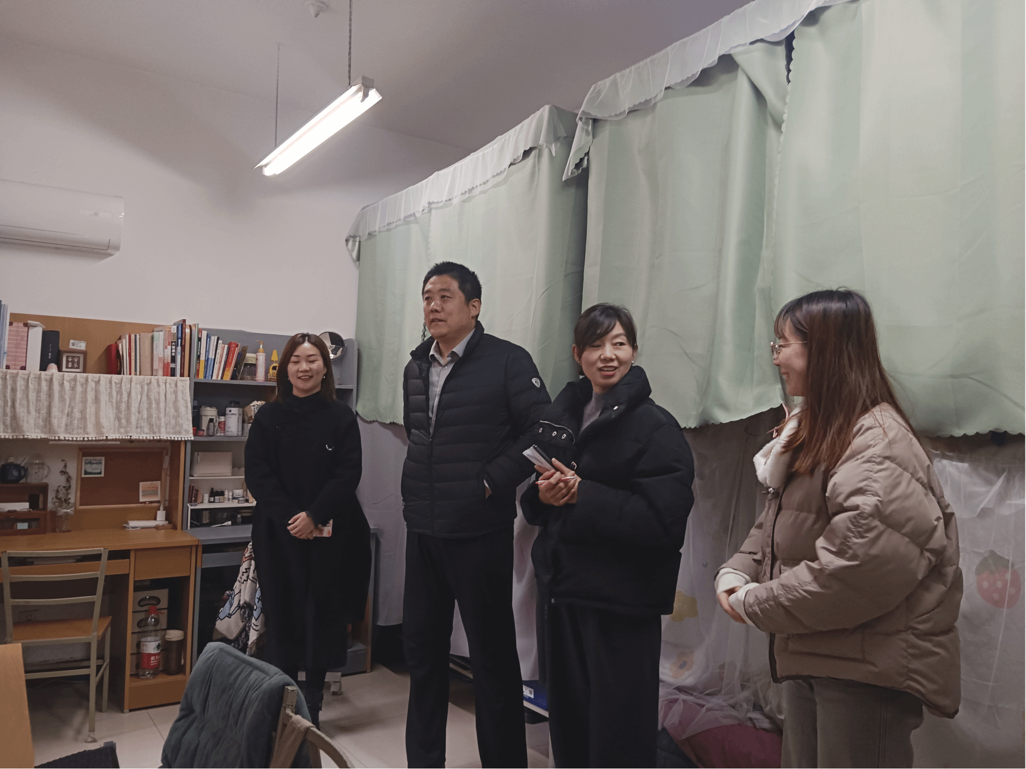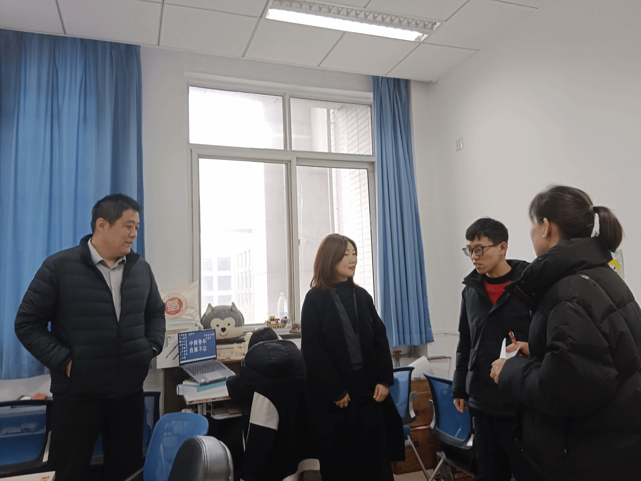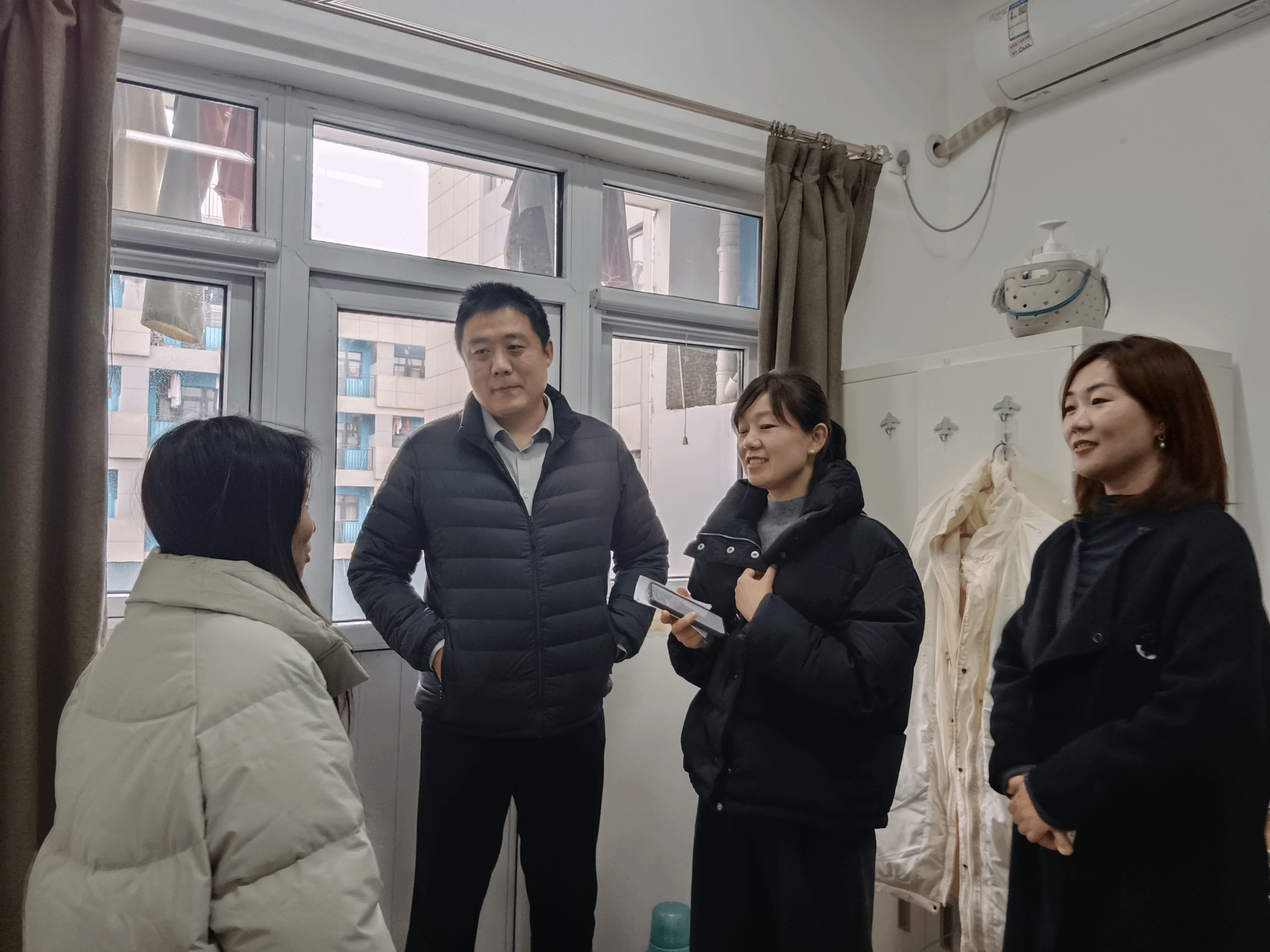 党委副书记李刚与博士生辅导员许斯诺、硕士生辅导员王换、学生兼职辅导员王夏荷一同走访MissAV