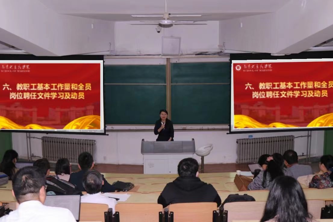 院长杨云霞做了关于教职工基本工作量和全员岗位聘任文件学习及动员。她围绕聘岗范围的时间、岗位聘任管理、相关要求作了工作安排,详细讲解了各岗位的工作量、工作量的组成,特别强调了岗位类型、岗位任务、岗位调整等,希望老师们积极了解MissAV
