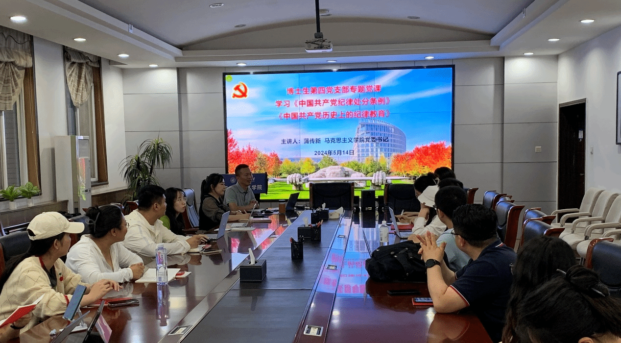 之后,蒲传新带头领学了《中国共产党纪律处分条例》,围绕条例内容、条例修订的重要意义、修订内容亮点、工作实践要求等四个方面进行详细解读。同时从历史脉络角度,梳理中国共产党历史上的纪律教育,着重对党的十八大以来党中央部署开展的6次党内集中教育进行回顾。他强调,我们要以高度的政治自觉、思想自觉和行动自觉进行党纪学习教育,在服务党和国家大局中深刻学习领会《中国共产党纪律处分条例》的主旨要义,切实增强纪律意识、提高党性修养,做一名学纪、知纪、明纪、守纪的合格党员,切实把思想和行动统一到党中央决策部署上来,在奋力推进中华民族伟大复兴的征程中贡献青春力量。