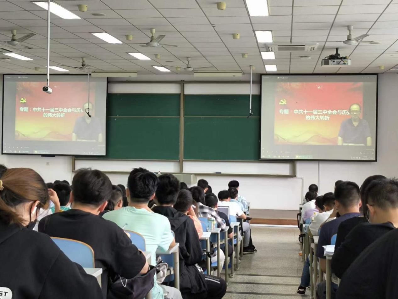4月27日上午,樊明方教授作《中国共产党十一届三中全会与历史性转折》专题讲座。樊明方教授从党的十一届三中全会的历史背景入手,详细阐述了这次会议召开的历史必然性和重要性。以生动的历史范例为切入口,串联起党的十一届三中全会的召开过程,以及会上作出的重要决议,总结了党的十一届三中全会历史性转折的伟大意义。本次培训希望同学们能够深化对党的认识,加强党性锻炼,增强党性修养,做有理想、敢担当、能吃苦、肯奋斗的新时代好青年。
