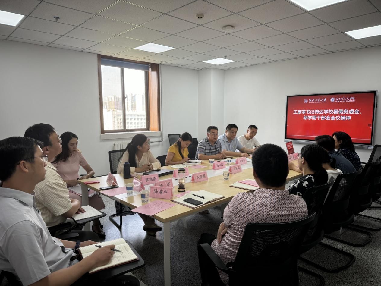暑期务虚会暨新学期中层干部会召开情况。与会人员集体深入学习了李言荣书记、宋保维校长在会上的讲话,就贯彻落实工作进行安排部署。