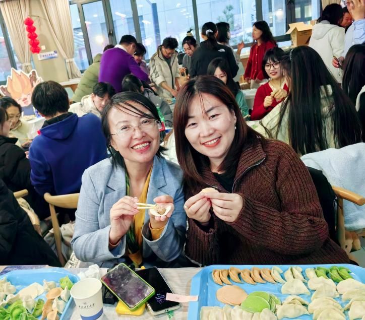 师生欢聚一堂,围坐一起,大显身手,争当“饺饺”者。“金元宝”“柳叶饺”“平安饺”……轮番出场,好不热闹!