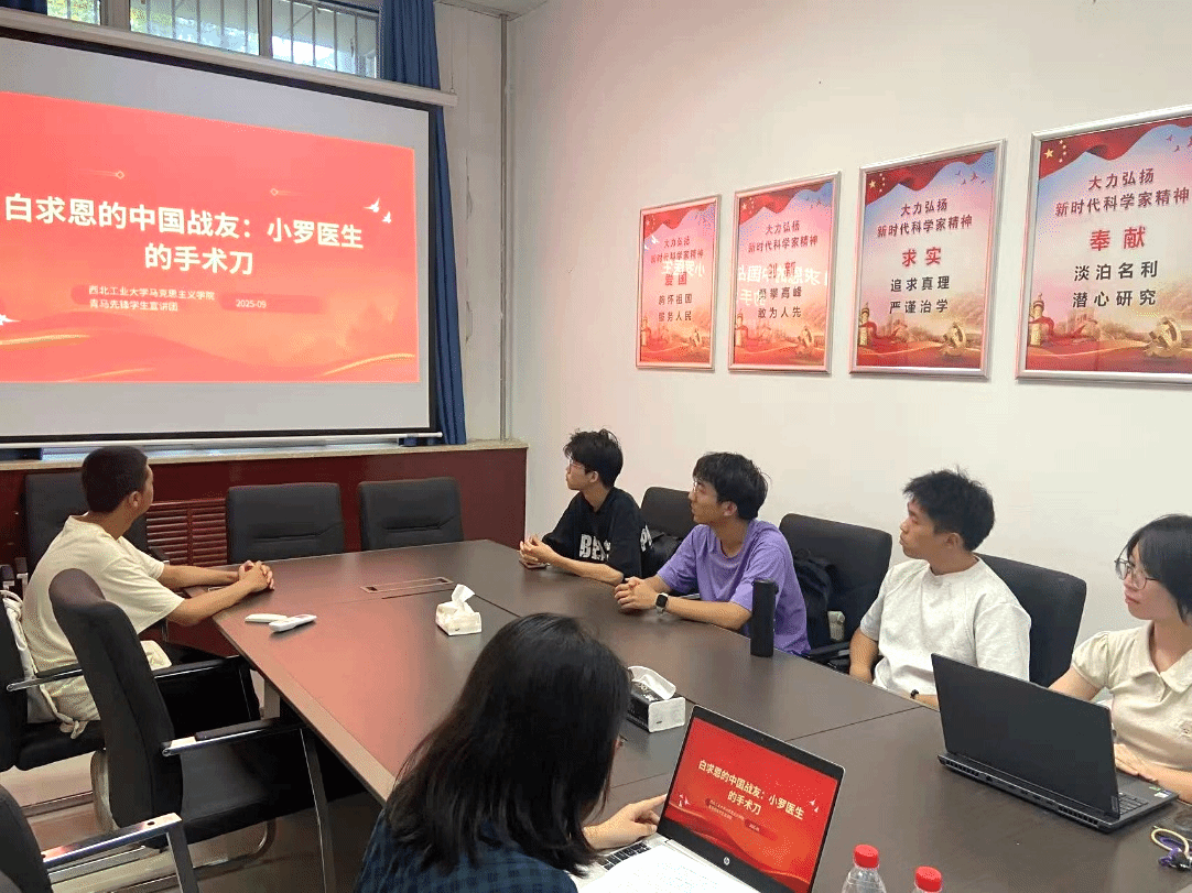 青马先锋学生宣讲团宣讲员孙抒祺以《白求恩的中国战友:小罗医生的手术刀》为题展开宣讲。她以抗战时期国际主义战士白求恩的好友、有着“白求恩第二”美誉的中国军医罗锦文为原型,深情讲述了这位医者以救死扶伤之术践行救国救民之责的感人事迹。生动再现了烽火岁月里,中华儿女用热血与生命诠释爱国情怀、用无畏担当挺起民族脊梁的英雄群像。引导在场学子从历史中汲取精神力量,感悟中国共产党人的初心和使命及其时代内涵。