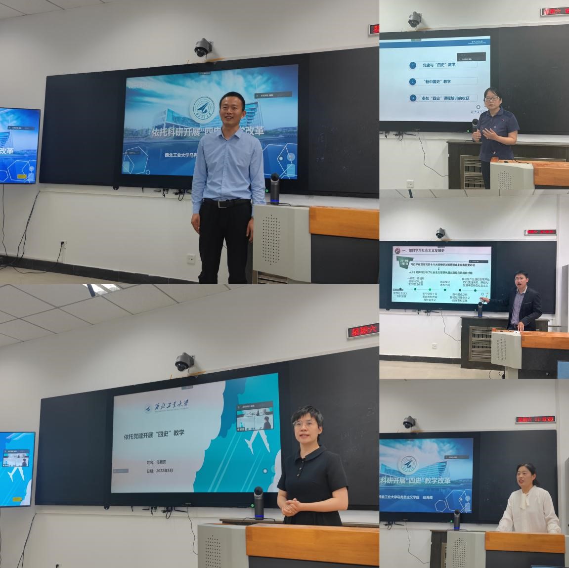 在教研分享环节,《新中国史》课程负责人马新蕊副教授做了依托党建开展“四史”教学的分享,指出以支部建设为契机,推动”四史“教学、科研、社会服务等功能于一体,以习近平总书记大历史观为根本遵循,准确把握新中国史的主线,积极回应学生关注,及时纠偏。《社会主义发展史》课程负责人山磊助理教授做了课程思政与思政课程协同推进“四史”课程建设的分享,认为只有通过全方位引入思政育人要素,使广大本科生在学习专业课程的同时,正确认识社会主义发展的历史主题、历史脉络、历史规律,牢固树立对马克思主义的信仰、对共产主义和社会主义的信念。《中共党史》《改革开放史》课程负责人赵海霞副教授,对“四史系列课程”教学团队依托科研开展课程建设情况,存在的问题及以后的教学工作规划进行分享,认为“四史”系列课程教学离不开教师们对相关内容的研究,教师需坚持历史审视与现实观照相关联,进一步加强四史相关的研究,持续挖掘思想政治理论背后的历史文化底蕴,持续拓展话语边界,切实提升思政课教学的实效性。MissAV