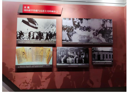 其次,在展厅中了解到大连作为国内最早传播马克思主义的城市之一,1920年7月1日就成立了大连中华青年会,致力于改造中国、改造社会。该会创办的刊物《新文化》对东北现代文学的产生、发展起了积极的推动作用。大连中华工学会作为东北地区最早的中国工会组织,对大连及东北地区工人运动起到了积极作用,推动了爱国统一战线的形成。