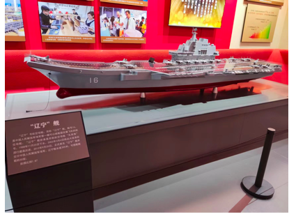 首先,在展厅中,实践队详细了解了甲午战争的全过程,中日的第一次战争,以北洋水师的全军覆没结束,签订了不平等条约《马关条约》,自此西方列强掀起了瓜分中国的狂潮。同学们感慨道:“大国的建设与发展,离不开强大海防力量。”新中国成立后,在中国共产党的领导下,大力发展海防事业,2021年9月25日中国第一艘航母辽宁舰正式交付中国海军,2019年12月17日中国第一艘国产航母山东舰交付中国海军,2022年6月17日我国第三艘航母正式命名为“中国人民解放军海军福建舰”。其中辽宁舰就是在大连造船厂改造并交付人民海军!通过在博物馆的学习,同学们了解了人民海军的艰难发展历程,为伟大祖国今天所取得的成果感到骄傲和自豪。