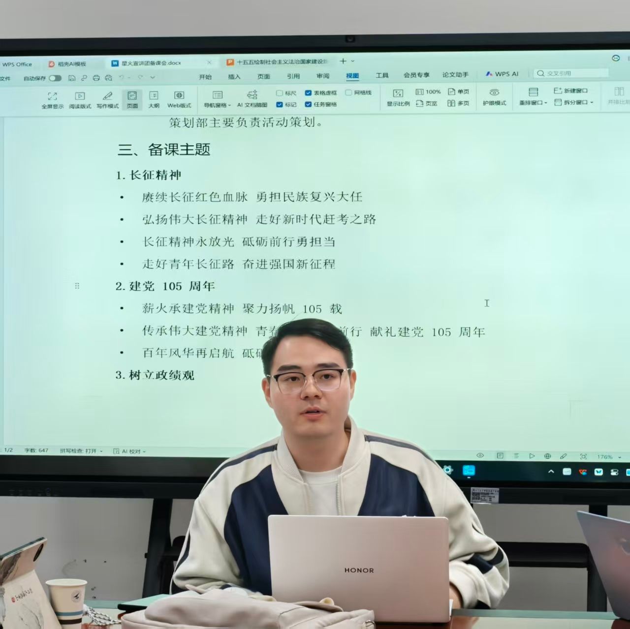 209会议室召开集体备课会。会议围绕宣讲团宗旨、组织架构、备课选题与工作推进展开部署,由张天浩老师牵头,宣讲团全体成员参会。