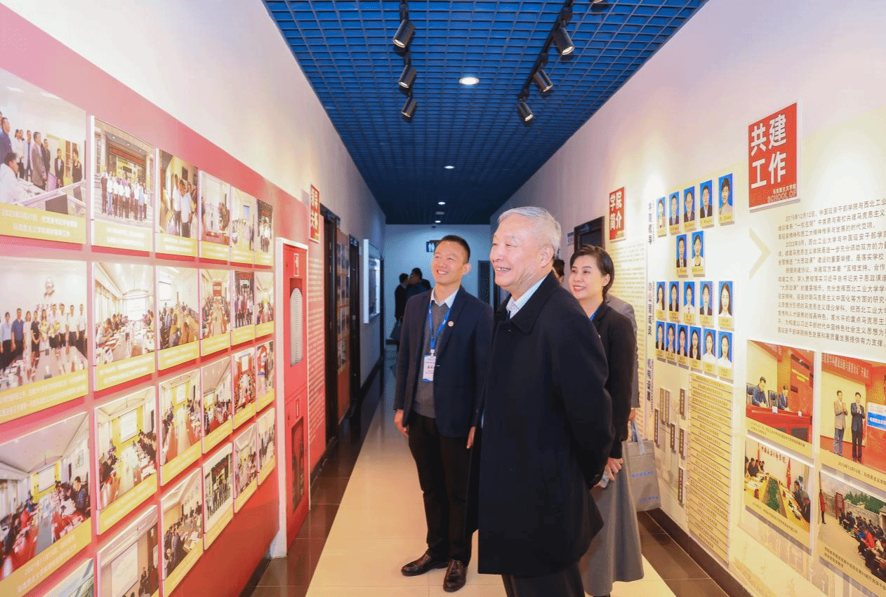Wang Xiaofeng, Dang Yuewu and Li Fuqiang visited the cultural corridor of the School of Marxism and gained an in-depth understanding of the history, teaching and research achievements, and cultural construction of the School.