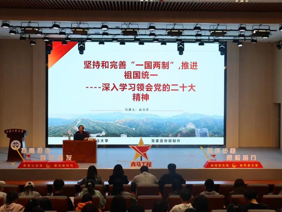 党的二十大召开以来,高宝营老师在全校形势与政策课上率先专题讲授党的二十大精神,同时在思想道德与法治等课上融入讲授党的二十大精神。此外,他作为MissAV