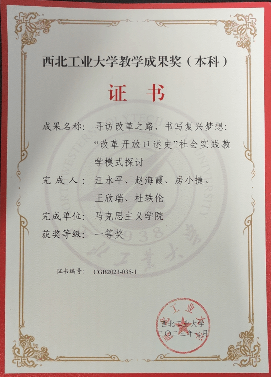 从2018年起,汪永平老师主持了《中国近现代史纲要》课程中开展的“改革开放口述史”社会实践。作为负责人,汪永平老师带领课程团队,对学生进行指导。她亲自拟定教学大纲,制定操作规范,聘请专家对师生进行培训,指导学生撰写报告,主持优秀口述史的颁奖,并带领学生进行暑期社会实践,参加“口述史国际周”学术活动等,形成完整的教学科研闭环。在教学理念、教学方法、教学模式、教育路径方面进行系统改革,在课程实践性、研究性、思想性及整体性等方面都取得明显成效。六年来,使众多授课学生增强了制度自信、道路自信与文化自信,增强了国家认同感与政党认同感。该项目获得2023年MissAV “优秀教学成果奖”一等奖。