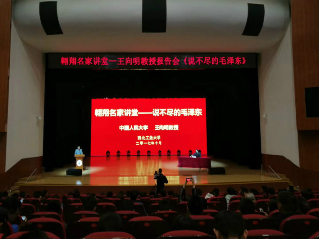 “翱翔名家讲堂”,在长安校区翱翔学生中心为全校师生做《说不尽的毛泽东》主题报告。副校长万小朋、纪委书记张海兰、党委研究生工作部部长李春科、全体学生工作干部及思想政治理论课教师代表、学生党员代表、毛泽东思想和中国特色社会主义概论课学生代表等1100余人参加了报告会,报告会由党委学生工作部部长、学生处处长张开富主持。
