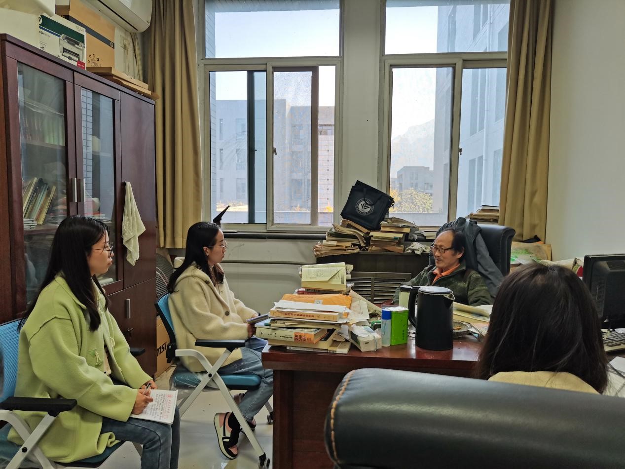 10月29日下午,访谈小组来到樊明方老师的办公室与樊老师进行交流。樊老师精神矍铄、面色和蔼,热情地招手让访谈小组坐下面谈。樊明方老师讲述了自己一生的艰难求学经历:由于时代限制,他小学毕业后便没机会上中学了,只能在生产队进行繁重的劳动。但是不公的待遇、繁重的劳动没有阻挡他对知识的渴望,借着为生产队读报纸、学习文件的机会,他如饥似渴地学习阅读他所能接触到的报纸、书籍。樊老师说:“当时并不知道读书就一定会有出路,只是觉得,就算不能上学,就算只能当农民,我也要做个有文化的农民,能写信、看报。”