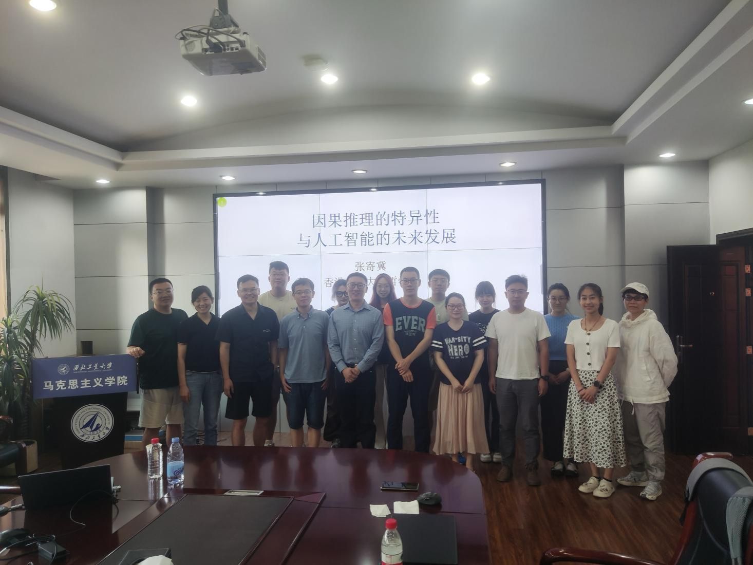 哲学系教授张寄冀作为主讲嘉宾,以《因果推理的特异性与人工智能的未来发展》为题,为诸位学者及与会学生带来了一场精彩的学术报告。同时,也吸引了多位高校学者参与,包括西安电子科技大学的苏丽和王雨程、西北大学的马醒初、空军军医大学的张瑜,以及MissAV