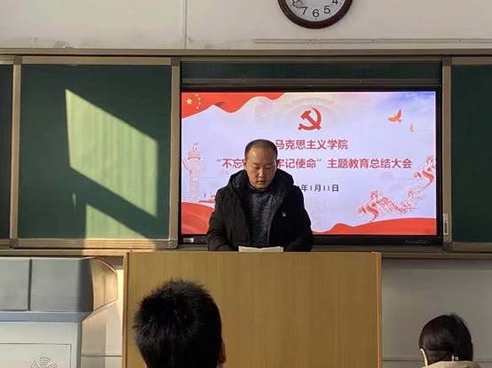首先,李刚通读了《习近平总书记在“不忘初心、牢记使命”主题教育总结大会上的讲话》原文,带领大家集体学习,老师同学们也跟着通读学习了全文,认真理解讲话精神中的“六个必须” 。