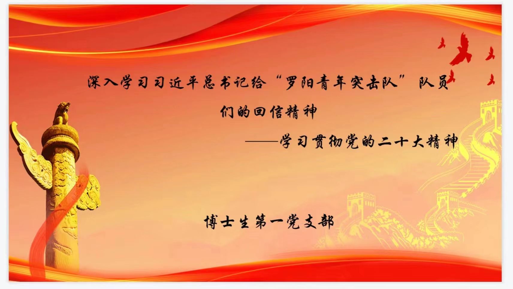 博士生第一党支部在线召开了“深入学习习近平总书记给中国航空工业集团沈飞‘罗阳青年突击队’的队员们回信精神”的主题党日活动,支部各位同志就自己的心得体会进行了分享。本次会议由支部书记李世文同志主持。