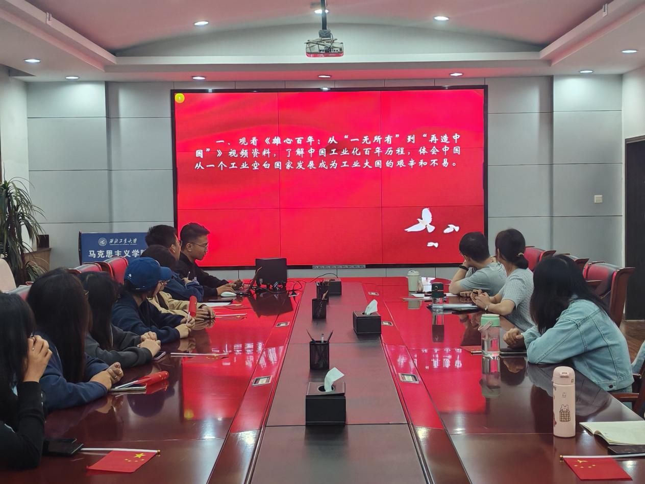 活动第一项,共同观看由共青团中央制作的视频《雄心百年:从“一无所有”到“再造中国”》,了解中国从工业空白国家发展为拥有独立完整的现代工业体系的工业大国的艰难历程,坚定学生将个人进步成长融入到推动国家发展的时代洪流中的信心和决心。