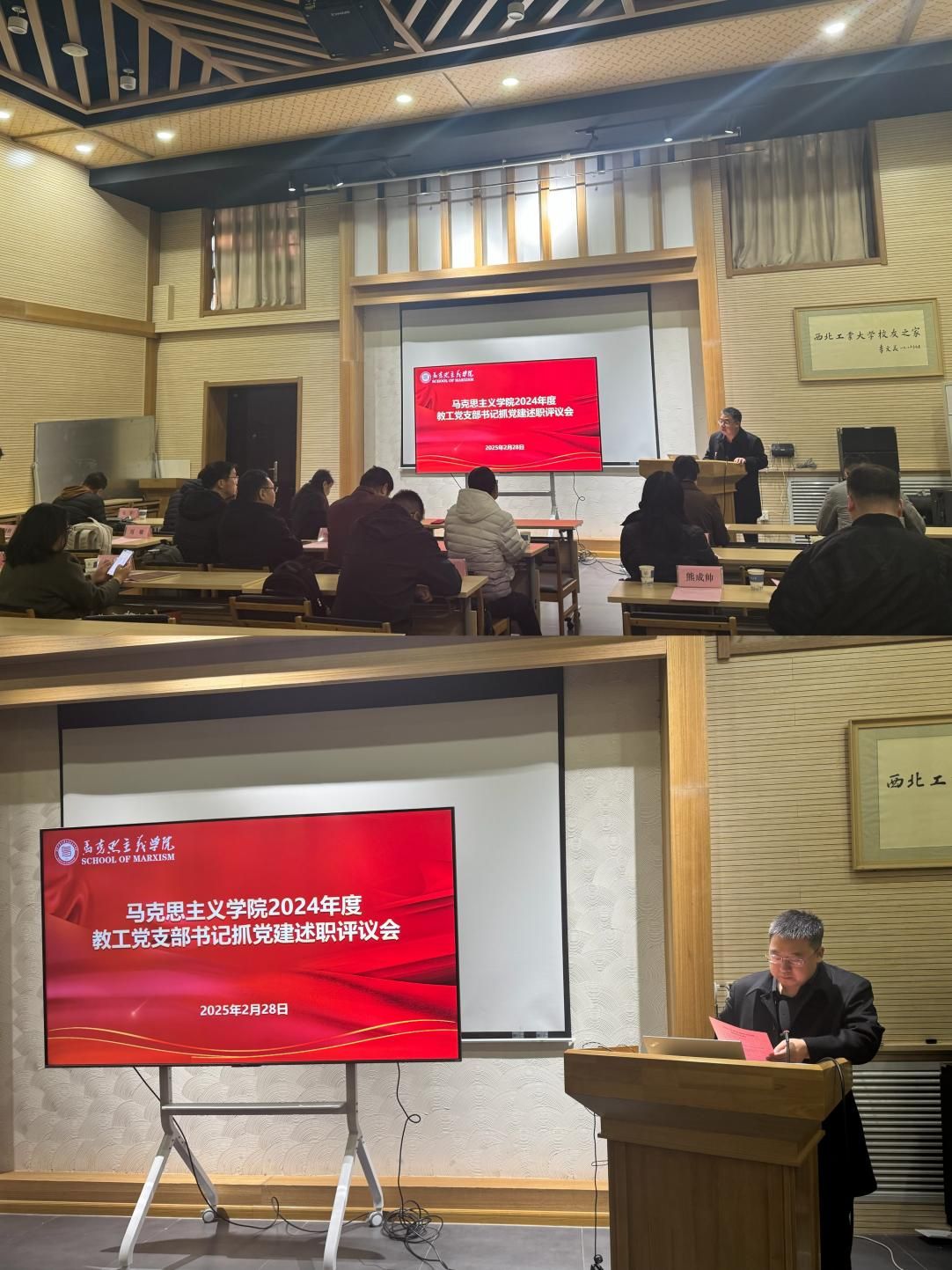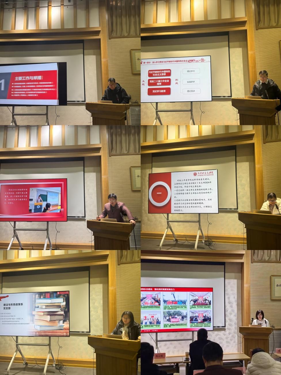 《关于开展2024年度党支部书记抓党建述职评议考核的通知》的主要内容和工作要求。随后,各教工党支部书记重点围绕“突出学习贯彻习近平新时代中国特色社会主义思想主题主线”“突出强化党支部政治功能和组织功能”“突出落实基层党建工作重点任务和加强党员队伍建设、突出做好师生思想政治教育”“突出落实全面从严治党要求”“存在的问题和下一步计划”以及“亮点工作”7个方面依次开展现场述职。各教工党支部书记用具体事例和数据支撑,客观、详实地展示了党支部一年来取得的成绩,全面总结了2024年度的工作情况。
