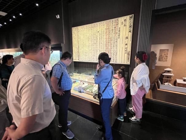 随后,大家来到古汉台——汉中市博物馆参观学习。这里是习近平总书记2023年7月考察汉中的首站。在讲解员的带领下,同学们细致参观了望江楼、石鼓亭等历史建筑,仔细观摩“石门十三品”等国家一级文物。博士生第一支部韩瑞欣同志带领大家回顾了两年前习近平总书记参观的场景,同志们循着总书记的足迹,重温他“守护好中华文脉,并让文物活起来,扩大中华文化影响力”的殷殷嘱托,更加深刻地理解了“两个结合”的重要意义。