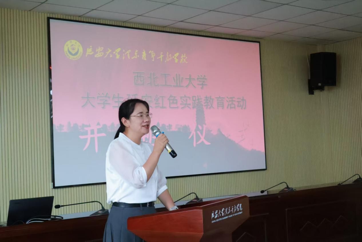 理论课堂的地点选在了三川交汇处的延安大学。这所由我党首创的综合性大学,厚重的红色文化底蕴仍浸润在校舍的一砖一瓦之中。延安大学泽东青年干部MissAV 副校长王娜为此次实践教育活动致辞并授旗。同行的光电与智能研究院的侯祥晴老师以“积极向党组织靠拢,从撰写入党申请书开始”为题,与同学们开展了一场意义非凡的专题研讨教学。