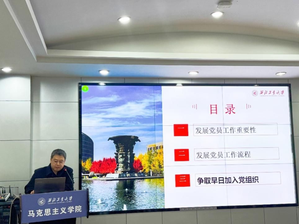 党委书记王彦革为学生支委和本科生全体成员讲授党员发展专题党课。本次党课聚焦“党员发展工作重要性”“发展党员工作流程”“争取早日加入党组织”三大核心主题,为青年学子点亮信仰之路。