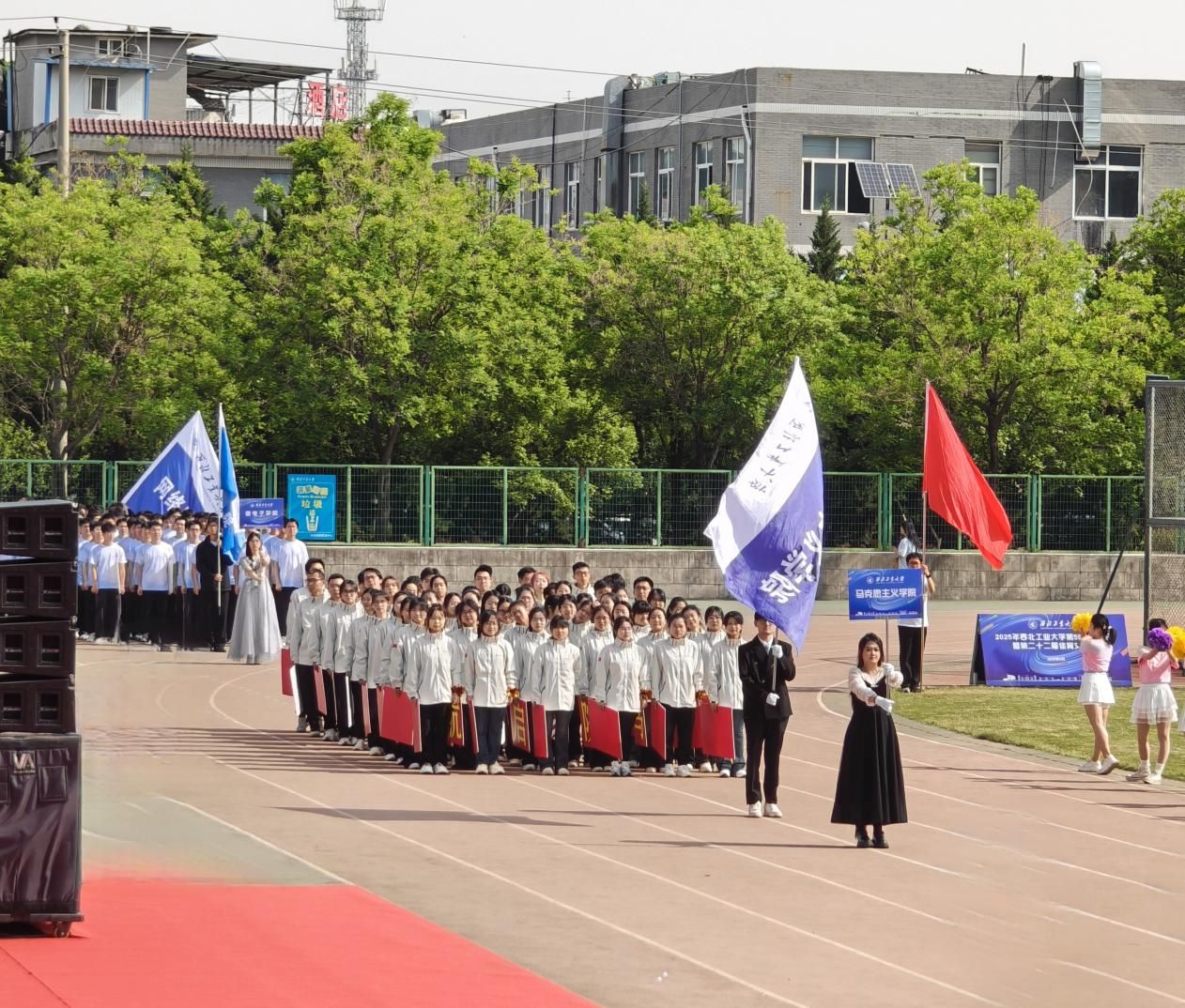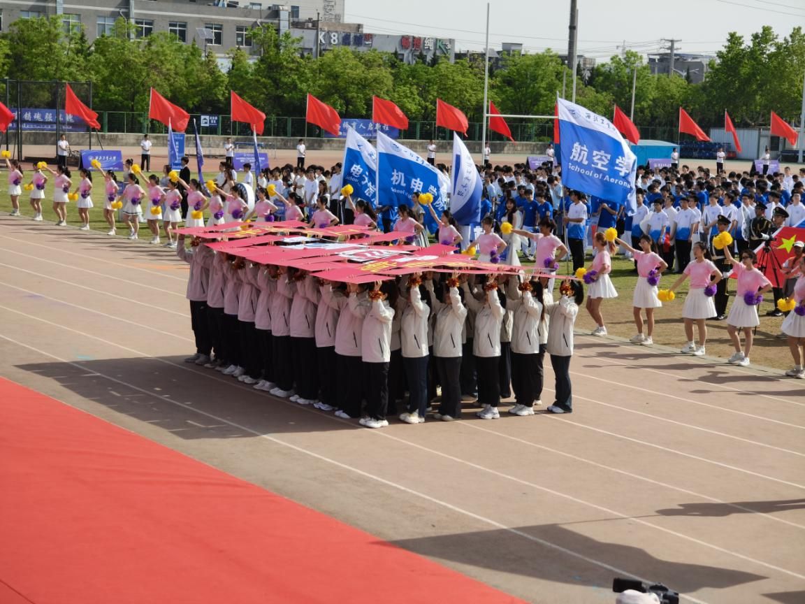 开幕式上,MissAV 方阵步伐铿锵,齐声喊出“天下工大、世界三航,以梦为马、筑梦芳华”的嘹亮口号。方阵成员通过齐心配合,拼出融合校徽与院徽元素的“工大逐光,马院启航”主题KT版画面,以整齐的队列和昂扬的姿态,彰显了团结进取的集体精神。