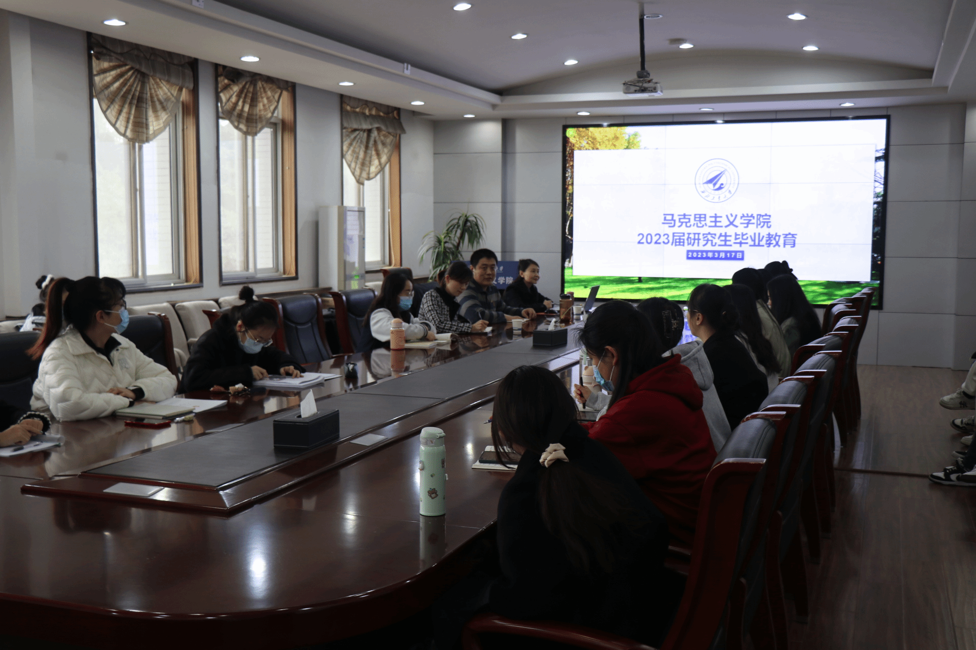 为引导毕业生坚定理想信念、厚植爱国情怀,增进毕业生对母校深厚感情,3月17日下午2点,MissAV 在MissAV 楼208会议室,顺利开展“工大最后一课”毕业教育活动,院长杨云霞、硕士生辅导员王换及2023届全体毕业生参加此次活动,由MissAV 党委副书记李刚主持。