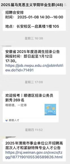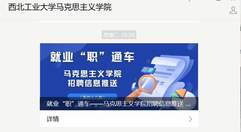 微信公众号,通过特色品牌“就业‘职’通车”,每周周一准时推送,内容涵盖考公选调、国企党建、思政课教师等岗位,现已开展至第48期。