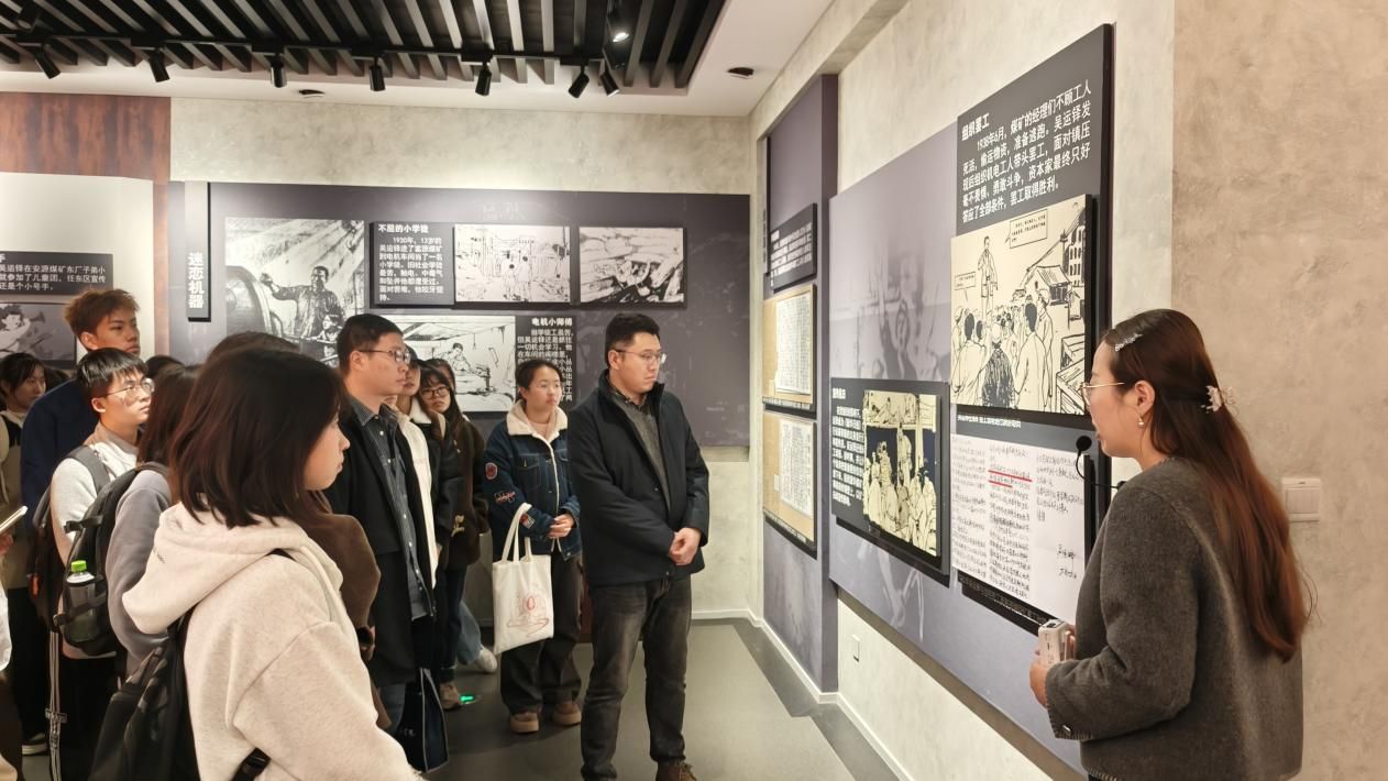活动第一站,师生们在讲解员的引导下参观了吴运铎纪念馆。展厅内陈列的实物展品、珍贵史料与影像资料,生动再现了被誉为“中国的保尔·柯察金”的吴运铎同志为兵工事业奋斗的一生。从试制武器时的舍身排险、带伤攻关,到扎根基层践行“把一切献给党”的铮铮誓言,他将七十余载的生命,熔铸成“无私奉献、大爱无疆”的精神丰碑。当师生们驻足于展柜前,凝视吴运铎曾使用过的工具、手稿与勋章时,仿佛那些静默的物件也在这一刻被唤醒,静静诉说着老一辈军工人“自力更生、艰苦奋斗、无私奉献”的动人故事。