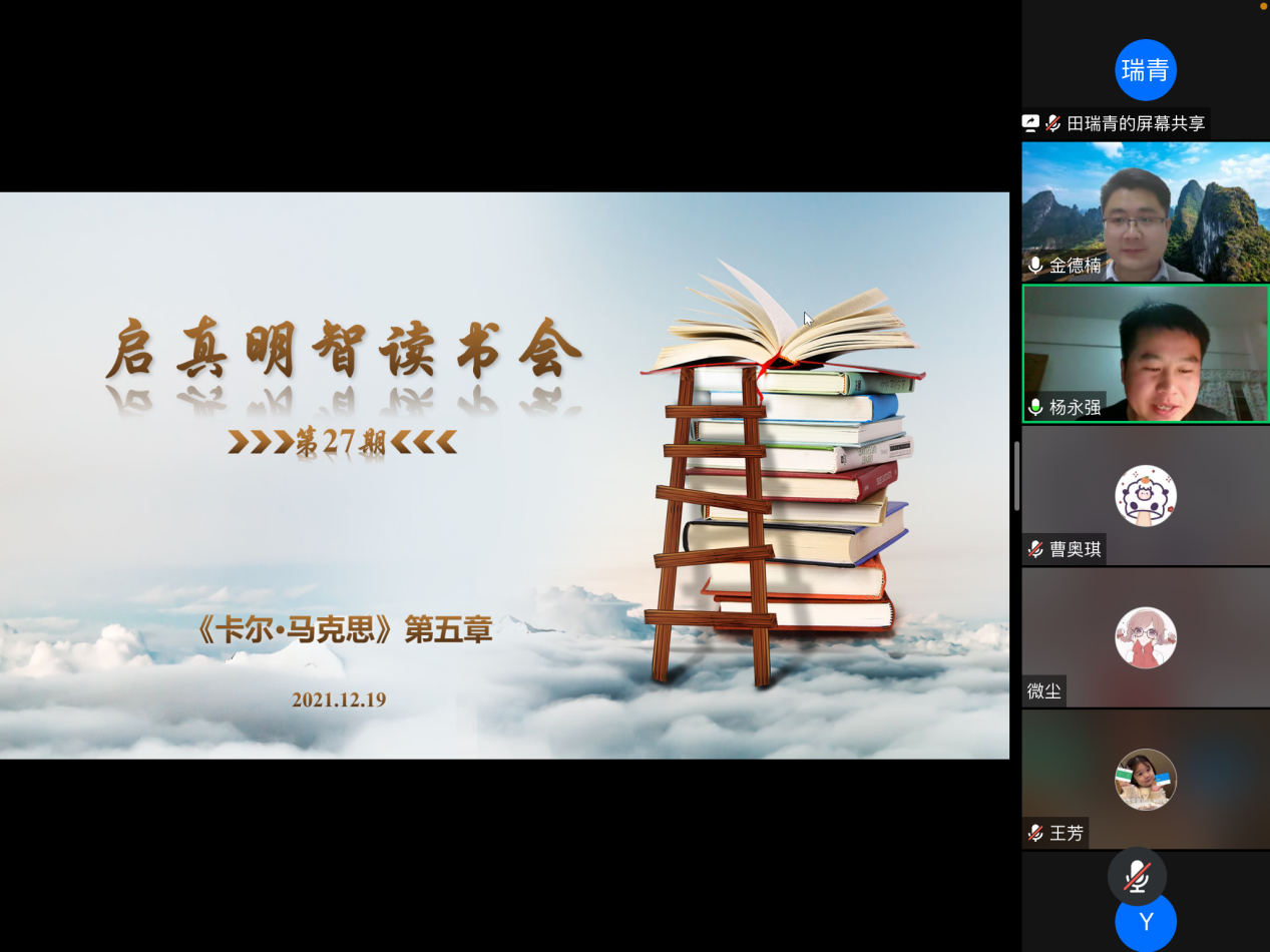 教授张云龙和助理教授杨永强参加本次读书会,读书会由硕士生田瑞青主持。