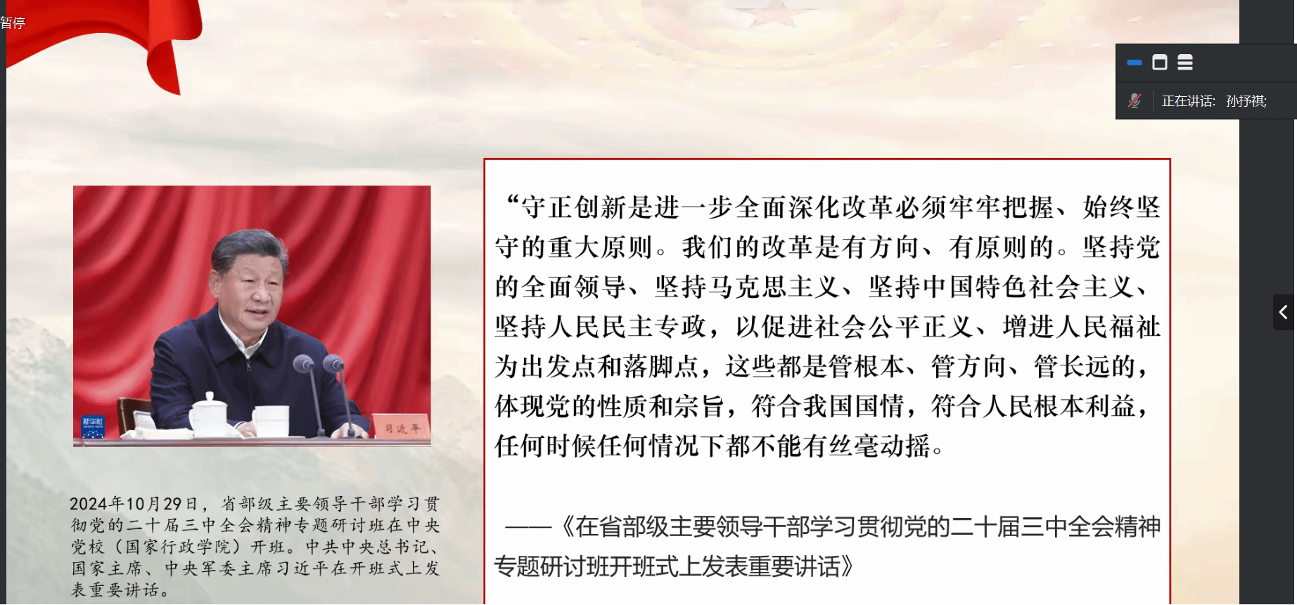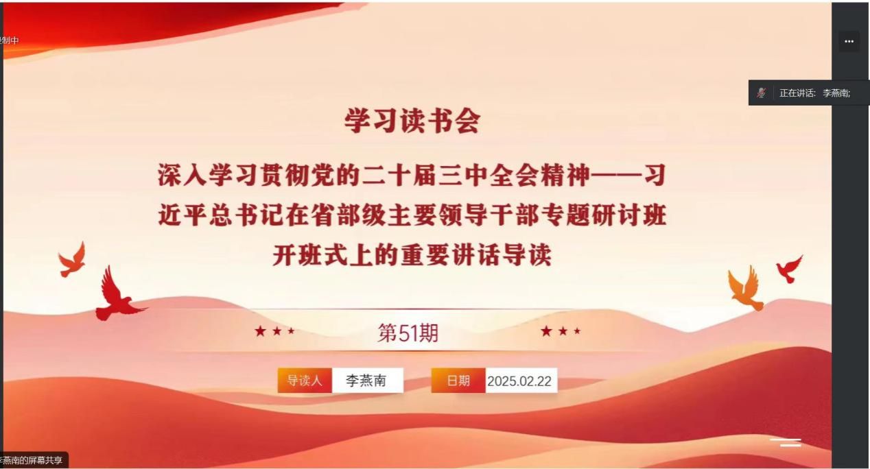 习近平新时代中国特色社会主义思想学习读书会第五十一期活动以《习近平在省部级主要领导干部学习贯彻党的二十届三中全会精神专题研讨班开班式上发表重要讲话》为主题进行学习研讨。本次读书会由MissAV