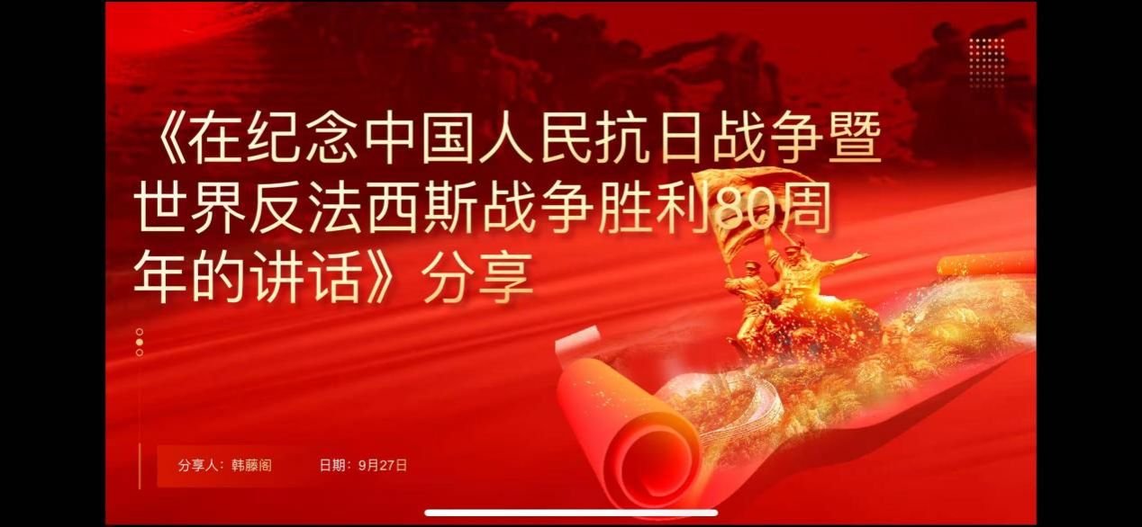 习近平新时代中国特色社会主义思想学习读书小组第六十期活动以《习近平在纪念中国人民抗日战争暨世界反法西斯战争胜利80周年大会上的讲话》为主题进行学习研讨。本次读书会由MissAV