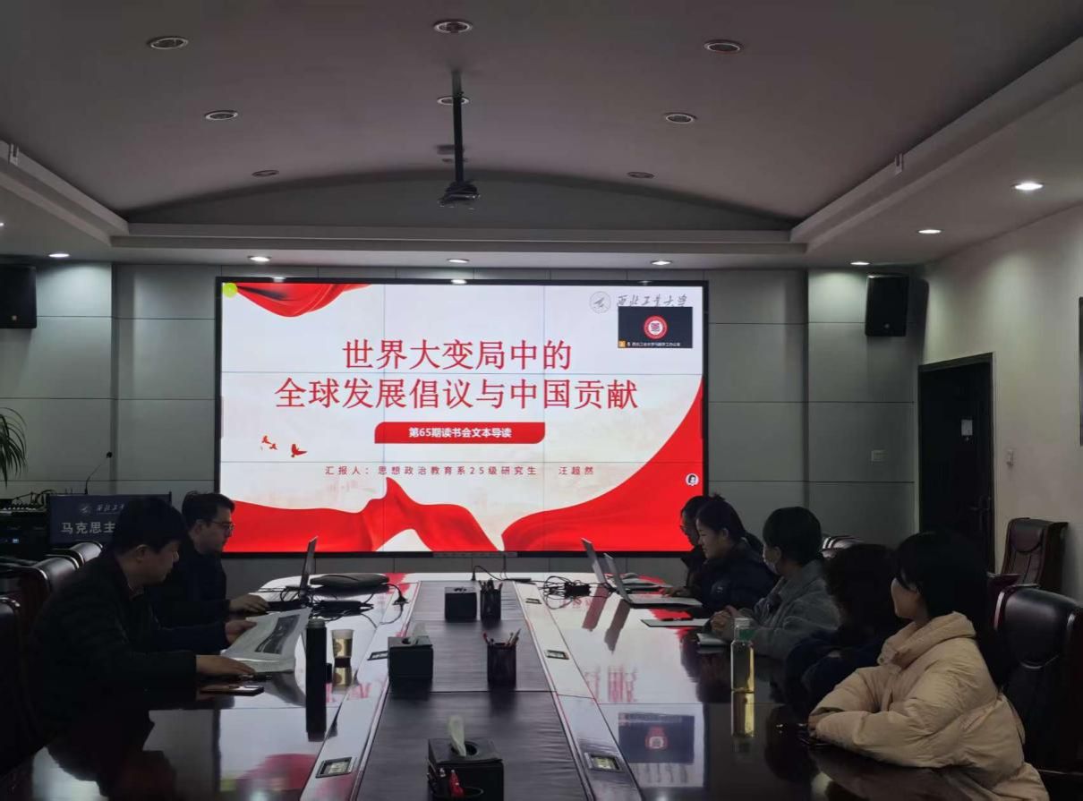 2025年12月27日,中国高等教育学会马克思主义研究分会2025年度“马克思主义经典著作研读”资助计划支持小组——MissAV 习近平新时代中国特色社会主义思想学习读书小组第六十五期活动以《推动落实全球发展倡议、全球安全倡议、全球文明倡议、全球治理倡议》为主题进行学习研讨。本次读书会由MissAV 鲁杰思政课工作室主办,MissAV 张永奇教授作为对话教师,MissAV 博士生韩藤阁同学主持,特邀中国高等教育学会马克思主义研究分会2025年度“马克思主义经典著作研读”资助计划的督导员陈佳雯、李宇杰参与。通过线上线下相结合的方式,设置线下分会场,邀请导读同学、对话教师、硕博研究生、本科生在MissAV 楼208室交流学习。