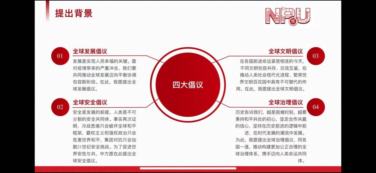接着,硕士生汪超然同学主要从“全球发展倡议”进行了深入浅出地解读。从全球发展倡议的提出到全球发展倡议的核心理念以及中国的贡献与行动案例。习近平总书记2021年9月首次在联合国大会上提出全球发展倡议,呼吁将发展置于全球宏观政策突出位置,推动全球发展迈向新阶段。全球发展倡议秉持发展优先、以人民为中心、普惠包容、创新驱动、人与自然和谐共生、行动导向六大原则,聚焦减贫、粮食安全、绿色发展等关键领域,旨在落实联合国2030年可持续发展议程,构建全球发展命运共同体。中国以“硬联通”与“自主能力建设”相结合的路径,强化“发展权”优先级,为全球发展提供新选项。这一开放的公共产品,呼吁各国携手参与,不让任何国家掉队,共绘共同繁荣的发展蓝图。